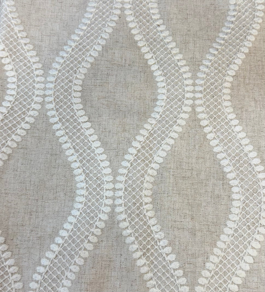 Cleo in Natural is a beautiful embroidered geometric fabric by Hamilton Fabrics. This fabric is recommended to use for drapery, upholstery, bedding, pillows and other interior projects.
