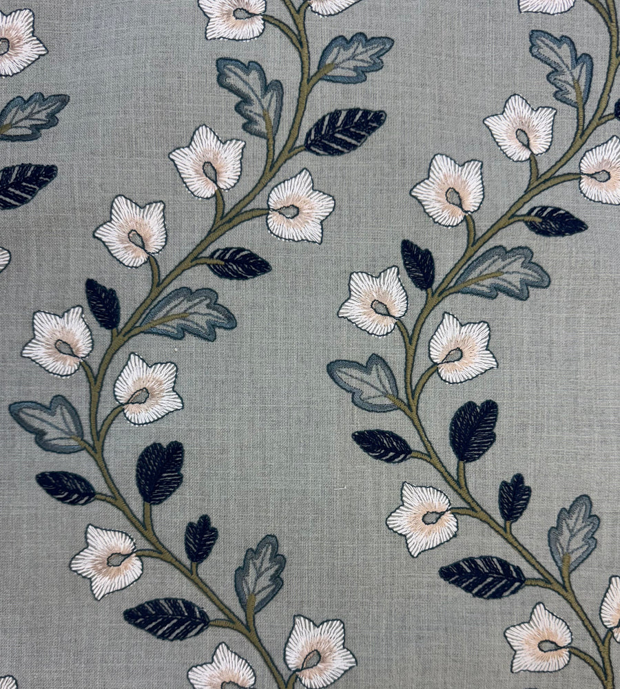 Fresh Meadow in Azure is a beautiful floral embroidery fabric by the yard. The recommended uses for this fabric include custom drapery, bedding, roman shades, pillows, curtains, and other light upholstery projects.