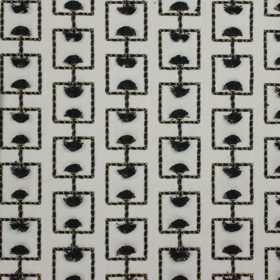 Klare in Black is a beautiful embroidered geometric fabric by the yard. The recommended uses for this fabric include custom drapery, curtains, roman shades, bedding, pillows, and light upholstery projects.