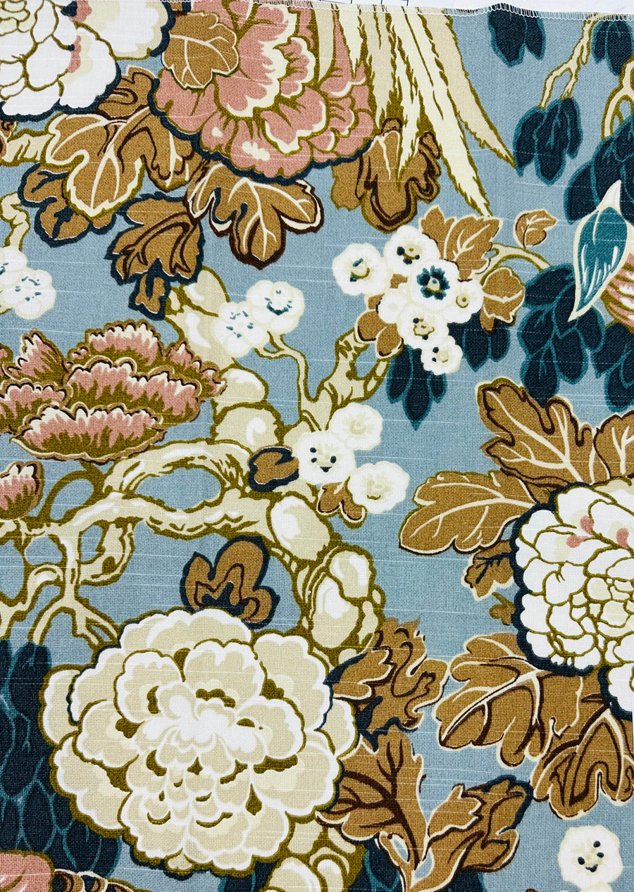 Byron Cotton in Classic is a beautiful floral fabric by the yard. The recommended uses for this fabric include custom drapery, curtains, roman shades, bedding, pillows, and light upholstery projects.