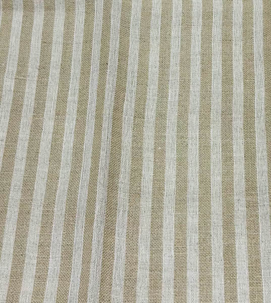 13748ST - Natural is a striped, linen, sheer fabric, perfect as a go-with for any project. This fabric is best used for drapery, bedding, pillows, and light upholstery projects. This fabric is a two-yard minimum.
