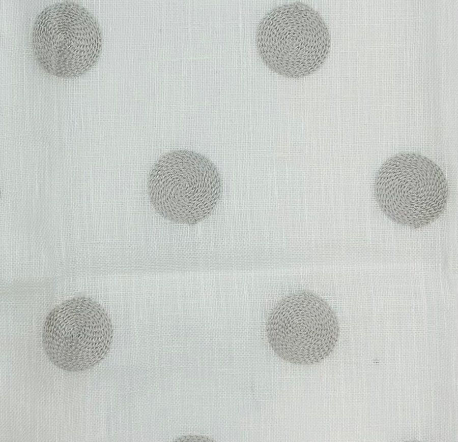 Daisy - Grey on Ivory is an embroidered, polka-dot cotton print, perfect for decorative pillows, shams, bedding, drapery, and window treatments.