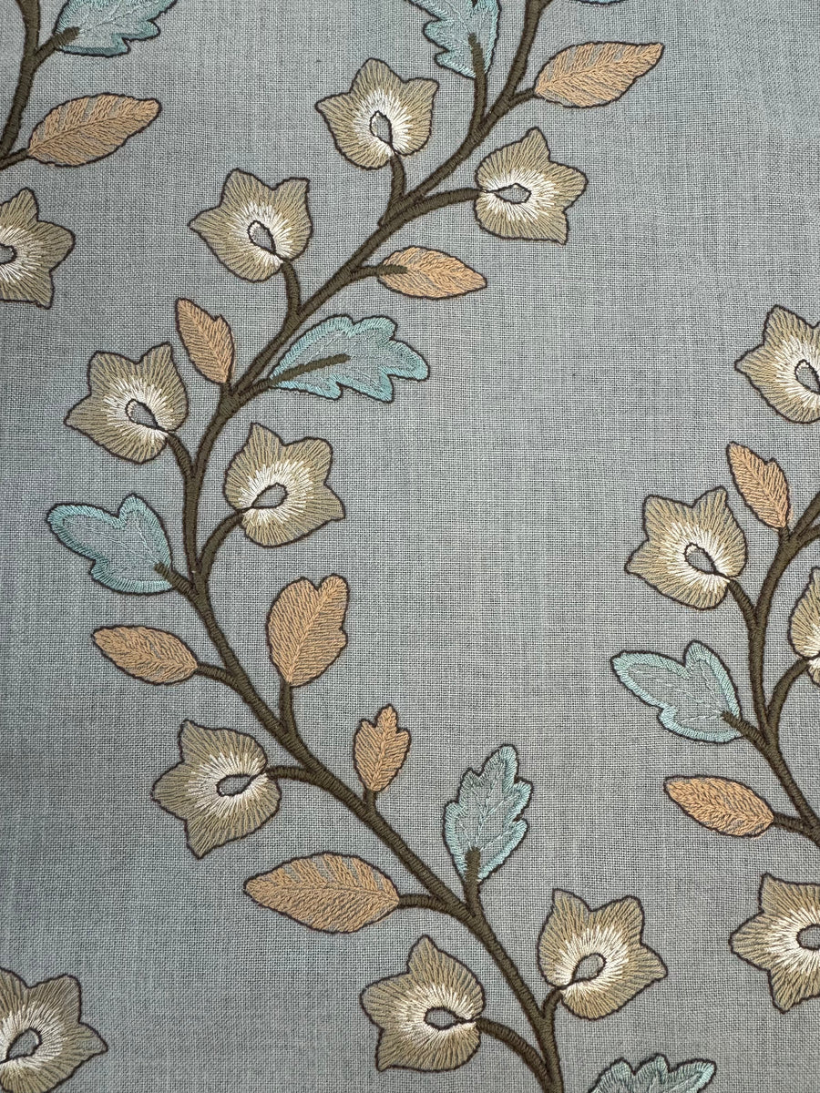 Fresh Meadow in Taupe is a beautiful floral embroidery fabric by the yard.. The recommended uses for this fabric include custom drapery, bedding, roman shades, pillows, curtains, and other light upholstery projects.